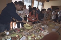 会員手作りの料理で、一般市民と受講生等が楽しく過ごします